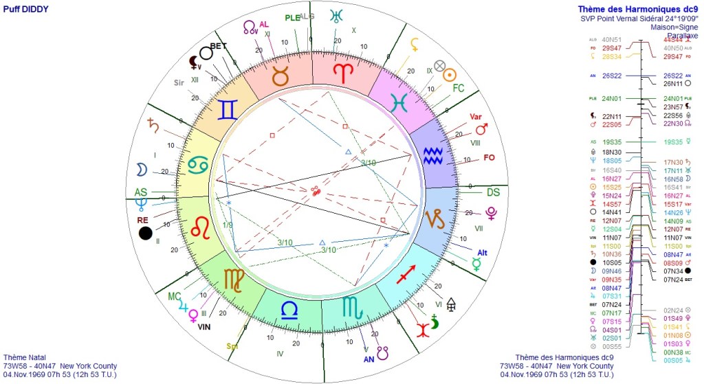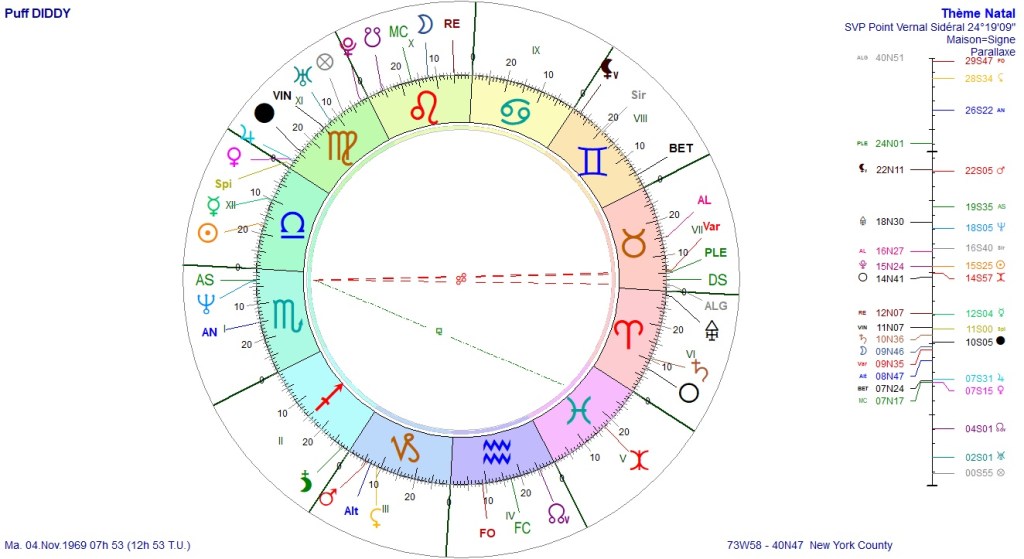 En parlant de Poissons, c’est la planète Neptune qui est la planète levante du thème de DIDDY. Voici ce thème :
